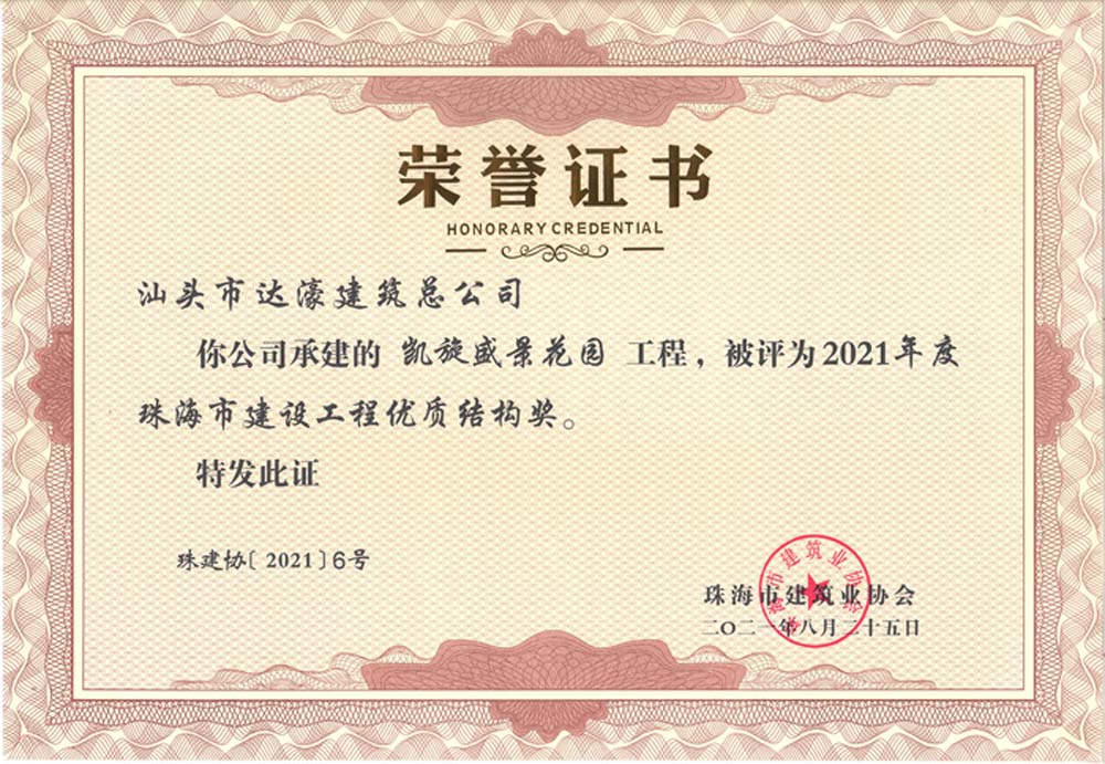 2021年度珠海市建設工程優質結構獎