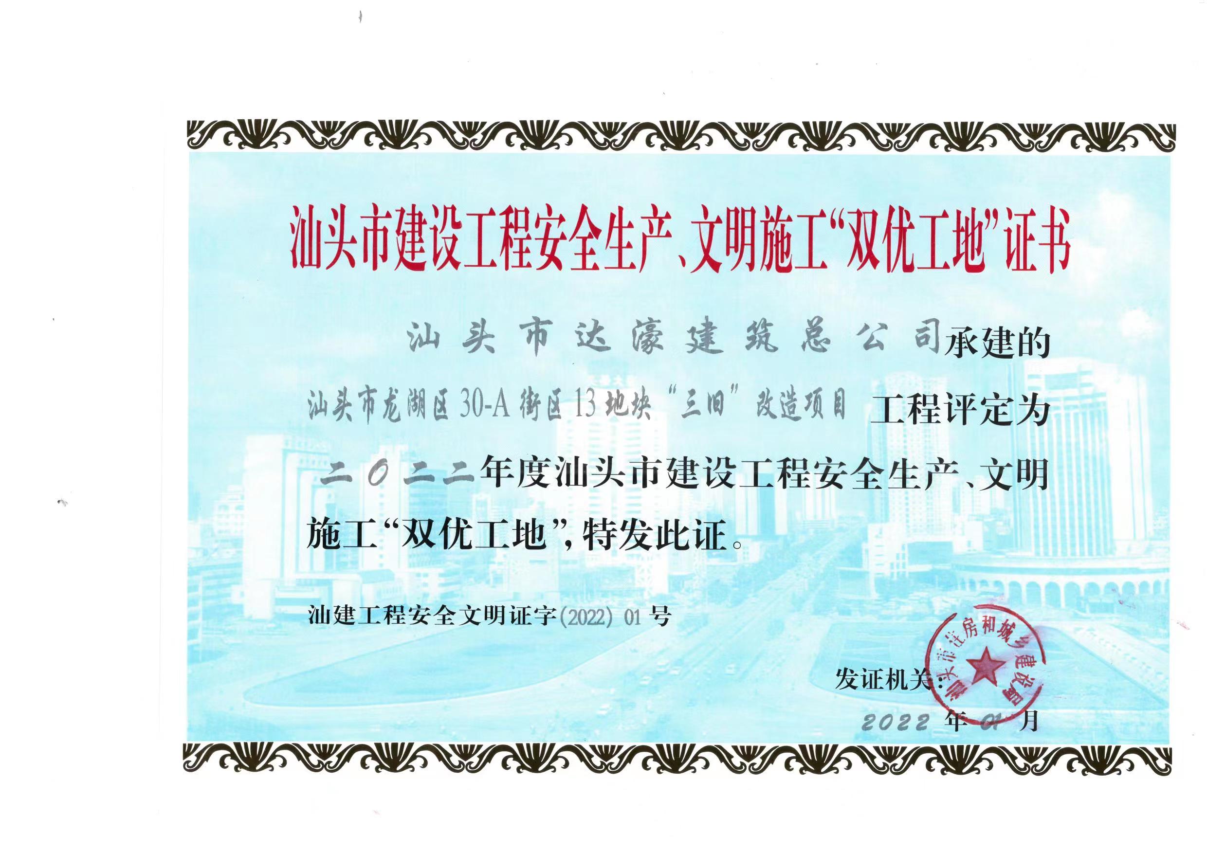2022年度汕頭市“雙優工地”