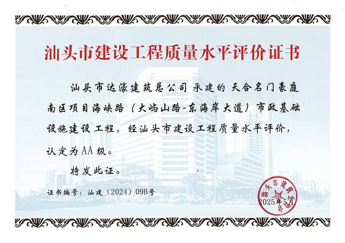汕頭市建設工程質量水平評價獲“AA級”
